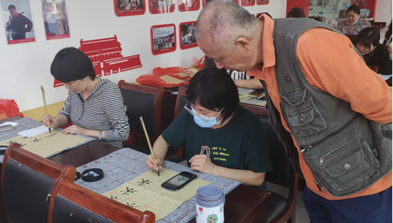 在自由練習(xí)時間,老師手把手教小組成員手握毛筆正確姿勢,示范毛筆字基本筆畫,引導(dǎo)大家規(guī)范書寫,感受書法藝術(shù)的魅力,為大家上了一堂生動的書法課。小組成員們興致盎然,聚精會神地書寫自己的作品,從中體會書法的美學(xué)特點以及行筆規(guī)范,盡情享受著書法帶來的樂趣。同時各位小組成員積極交流,互相探討學(xué)習(xí)書法的興趣及心得,大家紛紛表示,書法能靜心、修身、養(yǎng)性,能提高自己的修養(yǎng)、氣質(zhì)、內(nèi)涵,大家都會懷著端正的態(tài)度去學(xué)習(xí),勤學(xué)苦練,感悟書法的魅力。